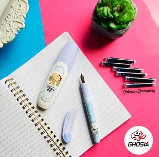 Creative Kawaii Cute Erasable Fountain Pen With 7 Ink Cartridge Magic Colorful Pen Set