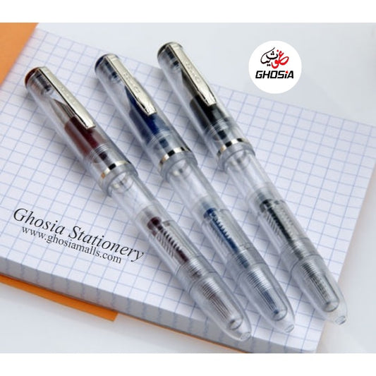 Dollar Fine Writing Crystal Body Fountain Pen Transparent Body Ink Pen For Students & Adults ( Set of 3 )