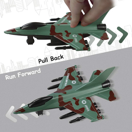 4 Pull-Back Airplanes Set Diecast Fighter Planes Toy for Kids Gift Party favor Collection
