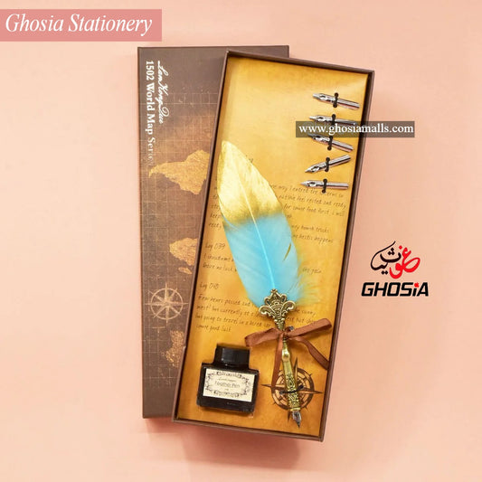 Feather Pen Set Luxury Vintage Metallic Carving Dip Pen, Calligraphy Writing with 5 Replacement Nibs