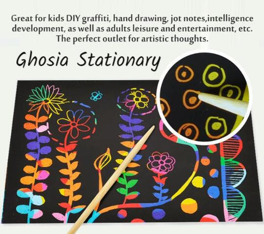 Colorful Scratch Paper Drawing Pad With Wooden Pen For Kids, Students ideal Gift Medium Size Drafting Pad
