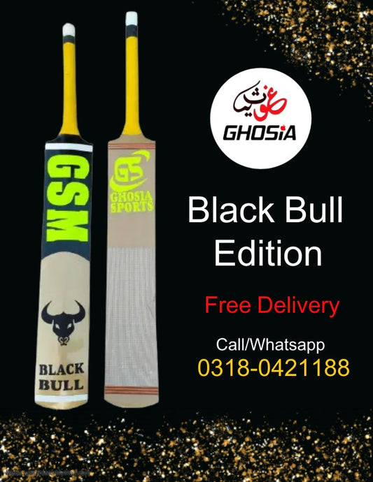 Black Bull Edition Cricket Bat_Ghosia Sports High Quality Wooden Tape Ball Bat With Cover