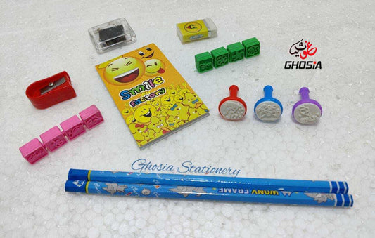 7 Pcs Happy Stationary Set for Kids School Stationery Set With Watch And Wallet Combo Pack