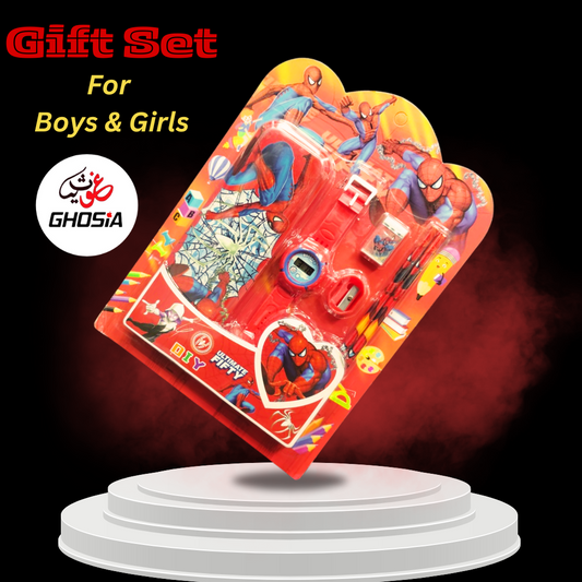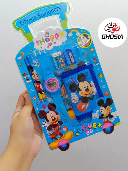 6 Pcs Stationary Set for Kids School Stationery Set With Digital Watch Cartoon Themed Gift Combo Pack
