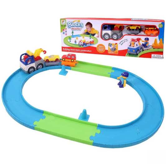 Blocks Train Track for Kids Building Block Train Playset with 30 Pcs, Battery Operated Toy Birthday Gift for Kids